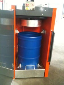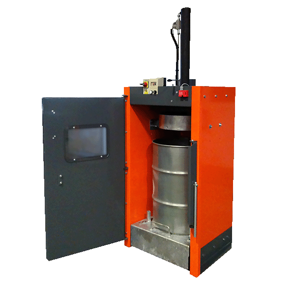Cette presse à fûts est spécialement conçue pour le traitement de vos déchets souillés ou contaminés directement dans vos fûts plastiques ou métalliques jusqu’à 220 Litres. Conçue de manière compacte et ergonomique, nous l’équipons d’un tiroir coulissant accueillant le fût que vous remplirez entre deux phases de compactage.